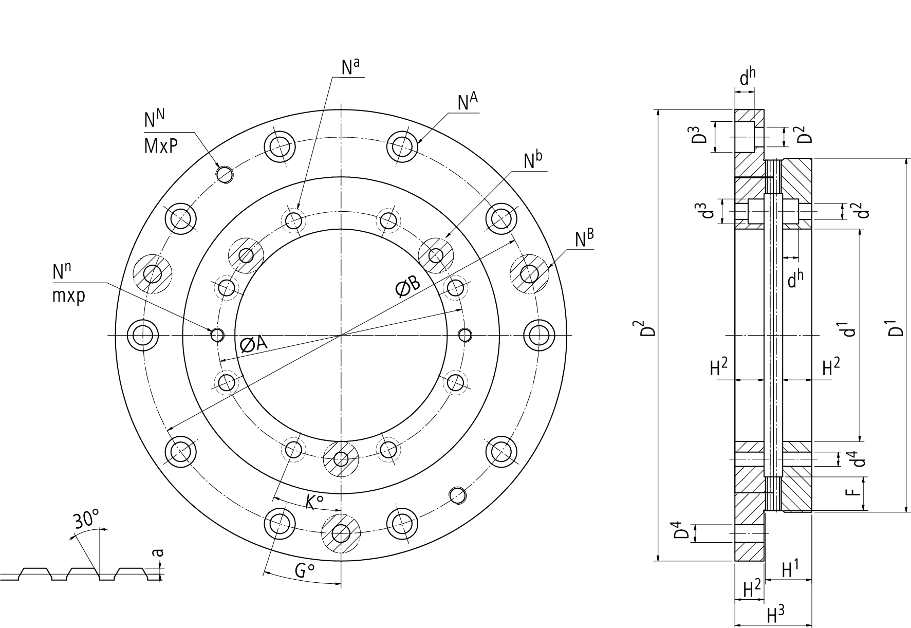 | 項目 | 型號 | D1 | D2 | d1 | N | F | H1 | H2 | H3 | Na | ΦA ΦB |